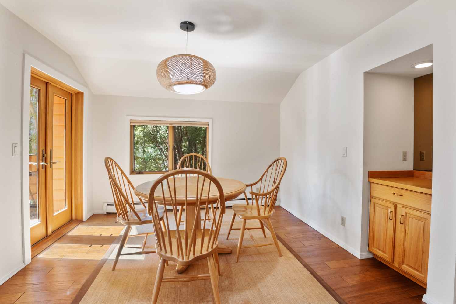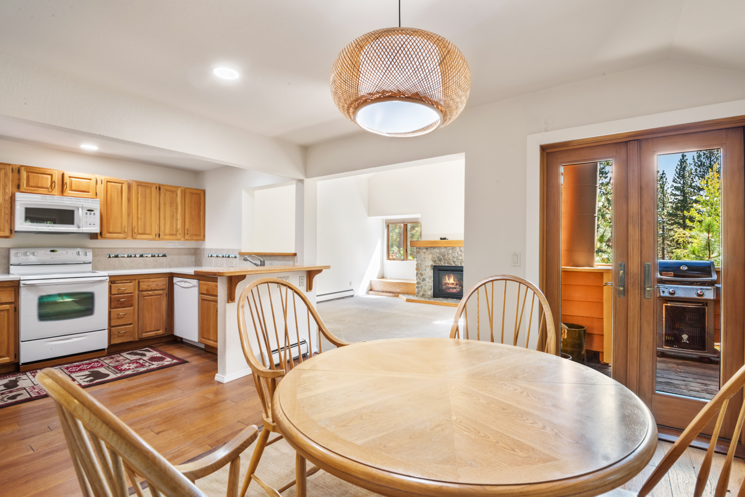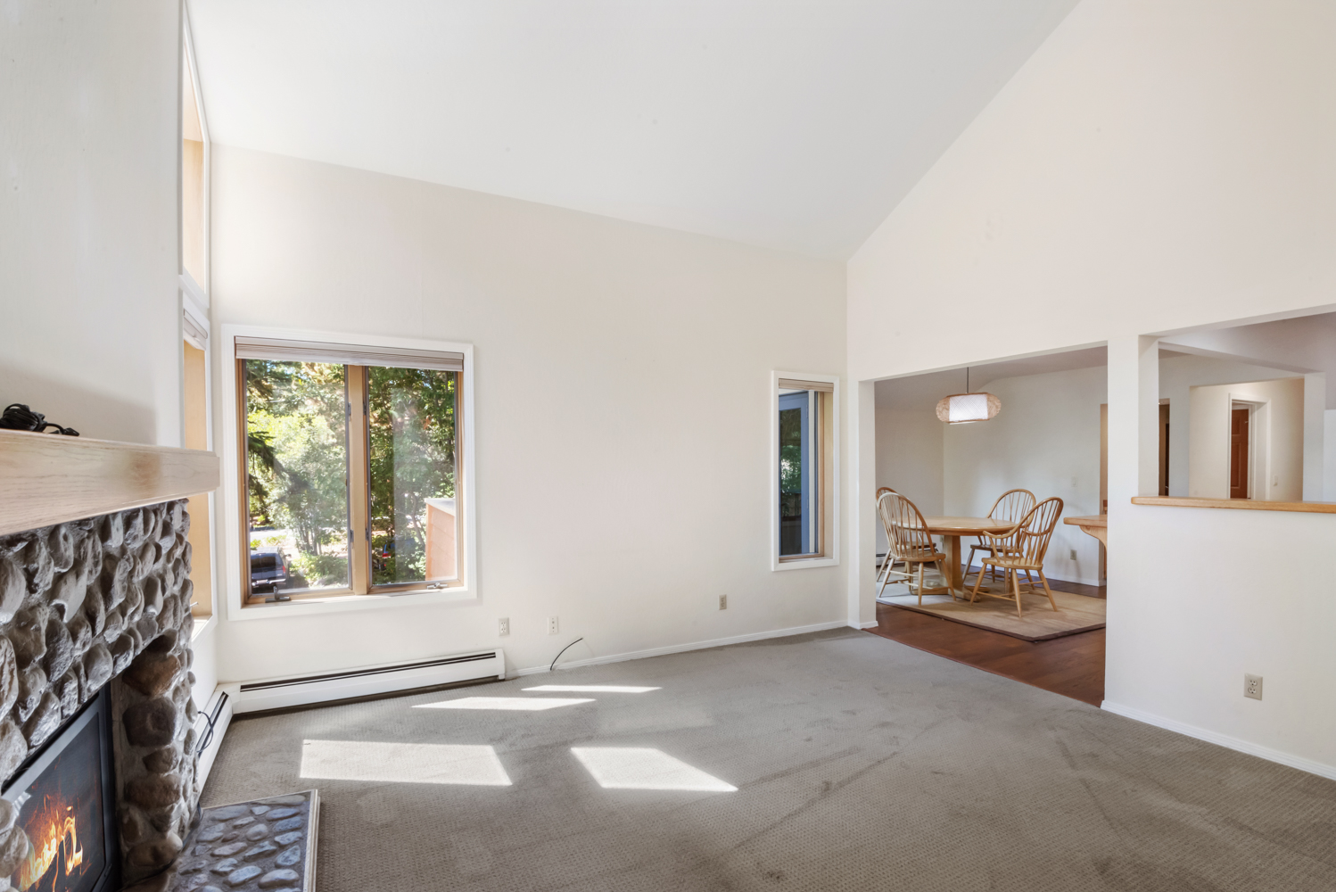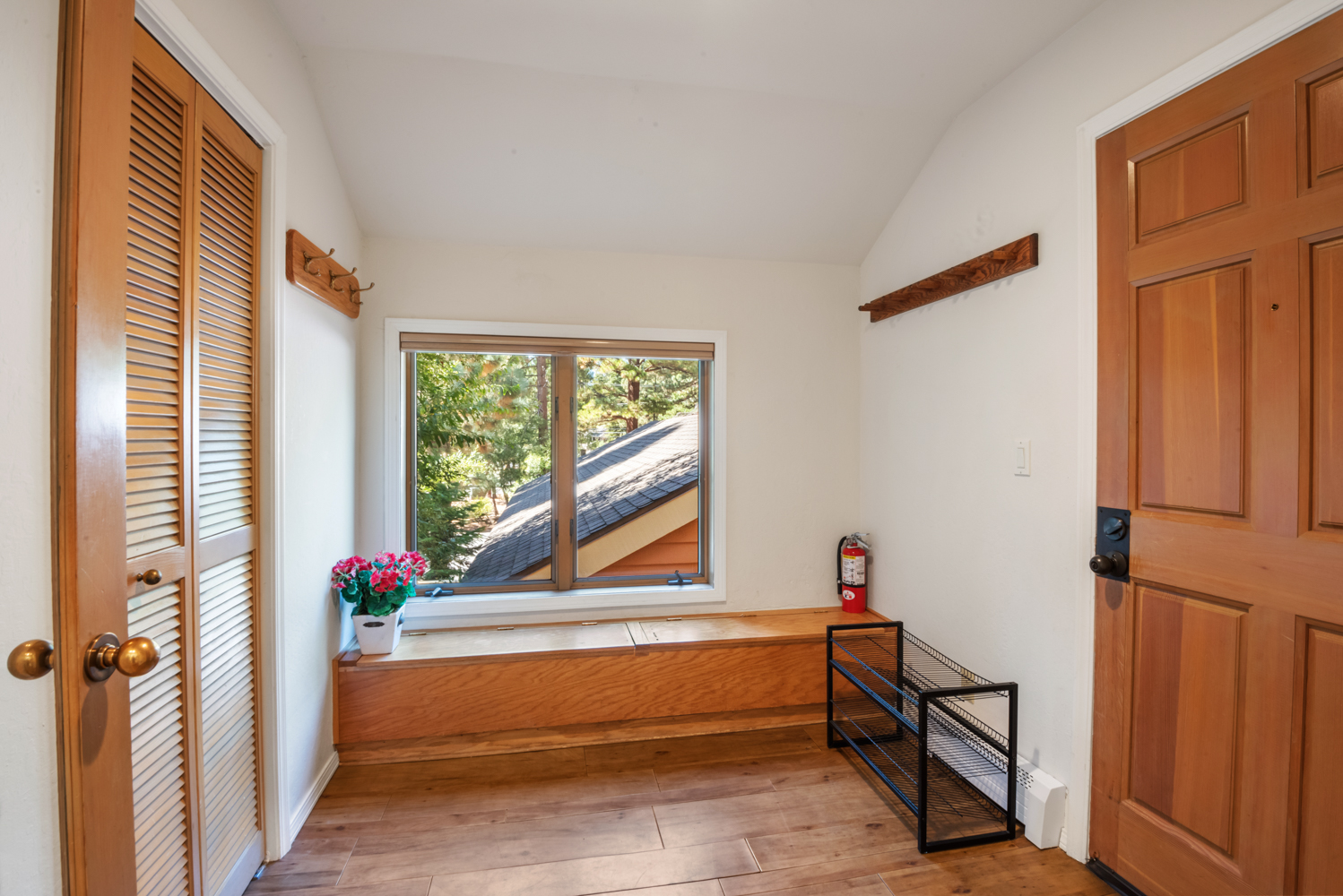 Unique 3 Bedroom, 3 Full Bath McCloud Unit. One car detached garage. High vaulted ceilings and sky lights. Very light and bright. Master and one bedroom on the second level with washer/dryer. One bedroom, full bath on main level. Open kitchen, dining and living area. Small deck off of the dining area. Hardwood flooring and carpet. Entry has large enclosed mud room with closet and seating storage. Available November 1st, No smoking, No pets.