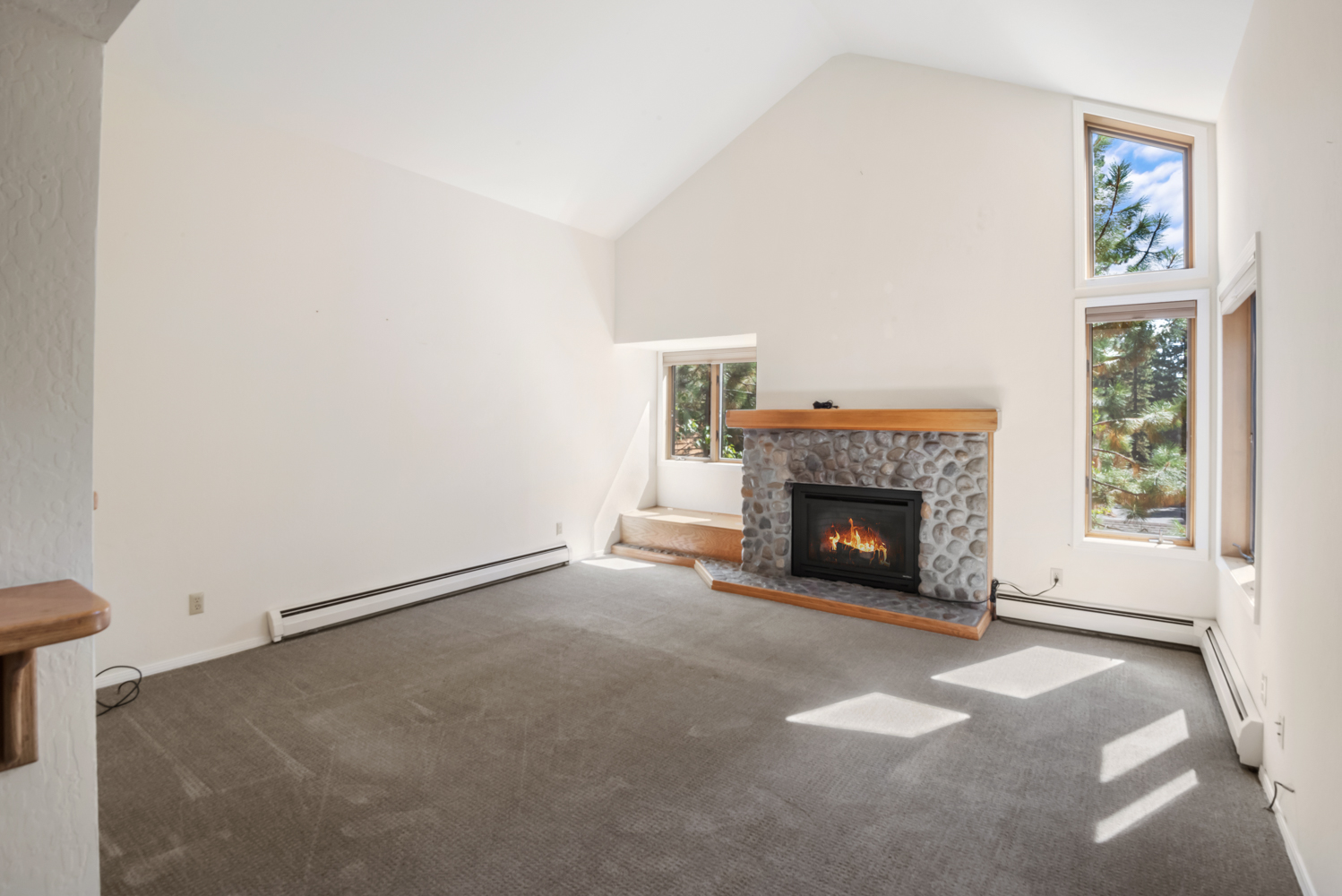 - • River Rock Fireplace